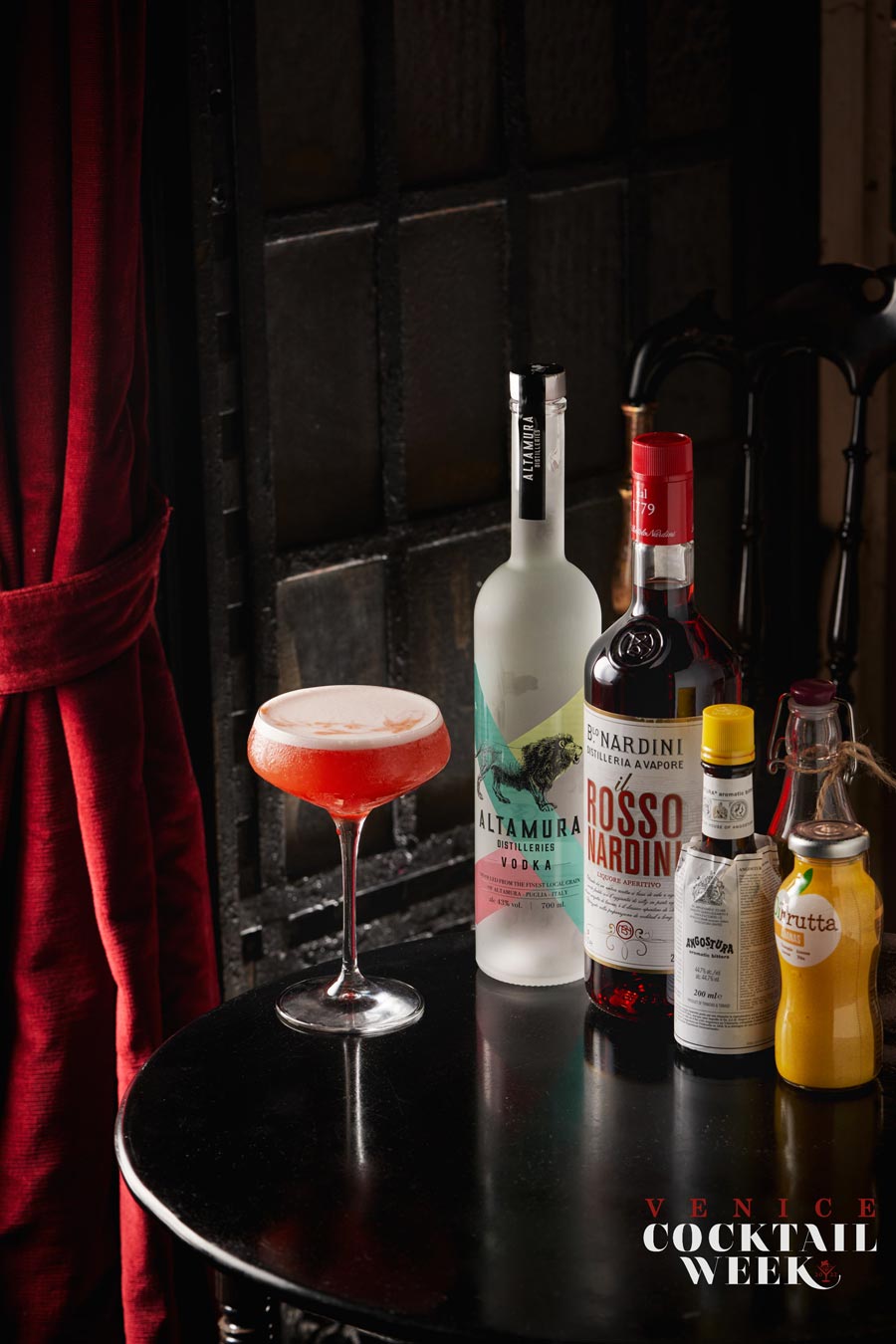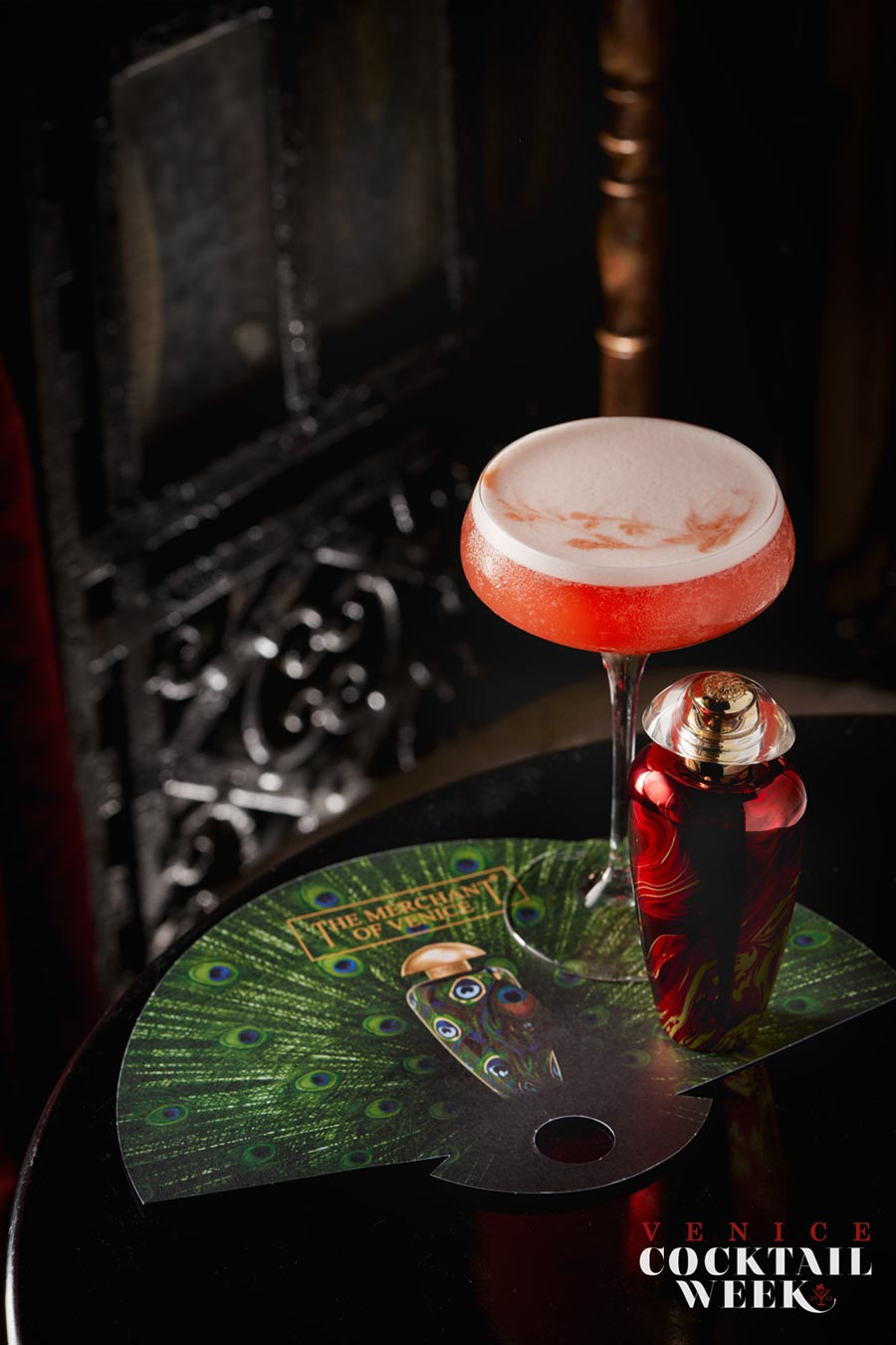 Red Potion, il Signature Cocktail realizzato in esclusiva per Altamura Distilleries in occasione della Venice Cocktail Week 2022. Red Potion è ispirato al profumo del noto brand veneziano Merchant of Venice. Le stesse fragranze si ritrovano all’interno del drink, che è servito in coppa da cocktail insieme a un ventaglio, suggerendo al cliente di annusare il profumo e poi la stessa bevuta per cogliere la vera essenza di questa “pozione”. Un’esperienza sensoriale unica, che accontenta occhi, palato e ovviamente anche olfatto.